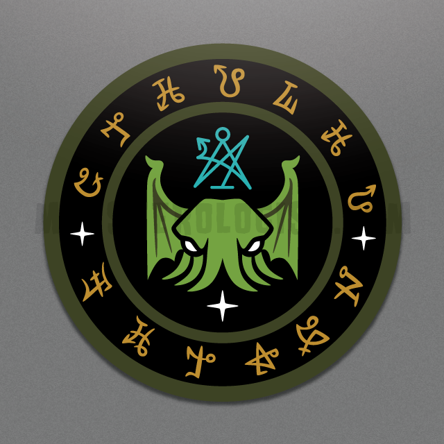 This Cthulhu die-cut vinyl sticker features everybody's favorite Great Old One, surrounded by mystical occult-like sigils that are revealed to read "Cthulhu Fhtagn" to the initiated within the secret society of H. P. Lovecraft fans.