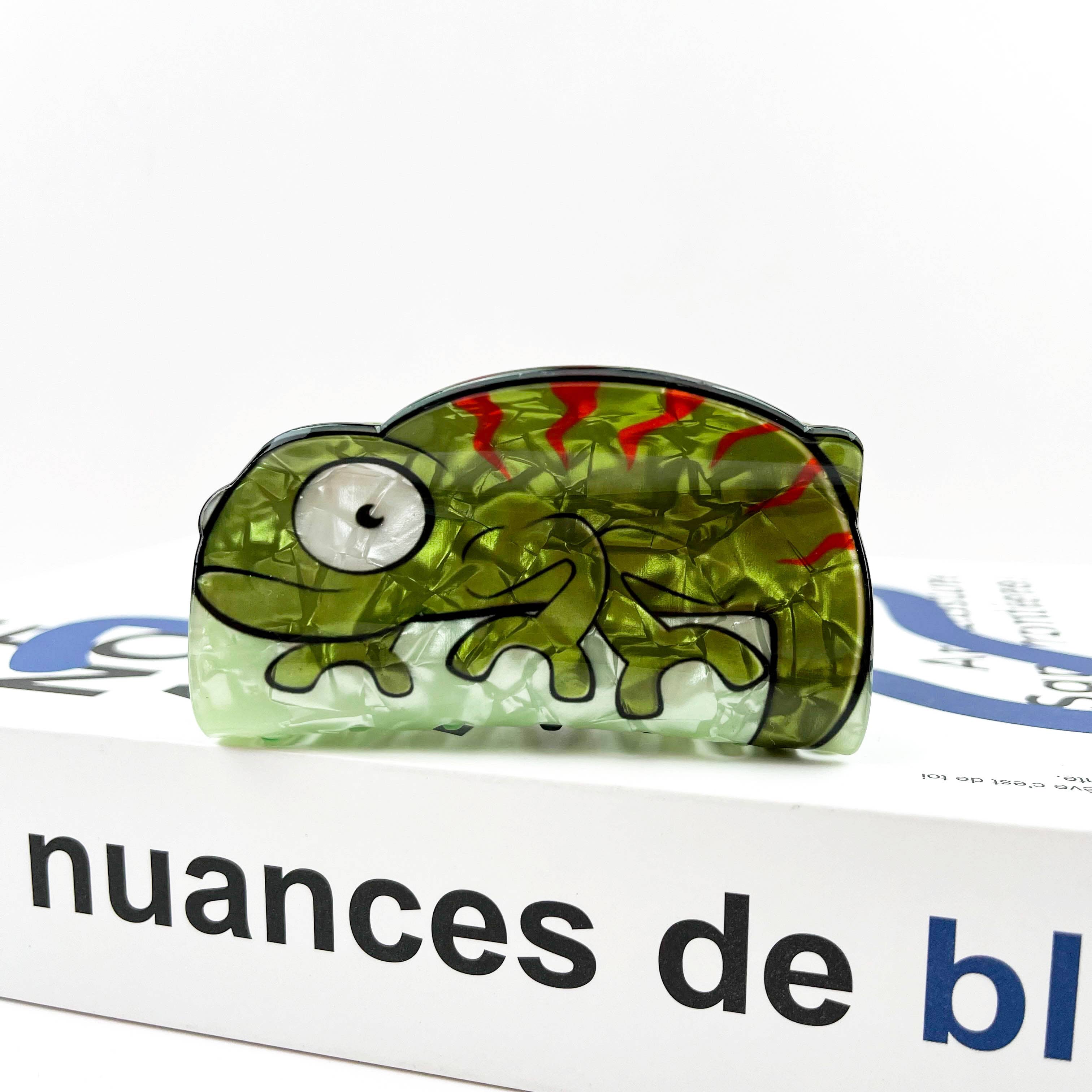 Green Lizard Hair Claw Clip: Red-backed lizard