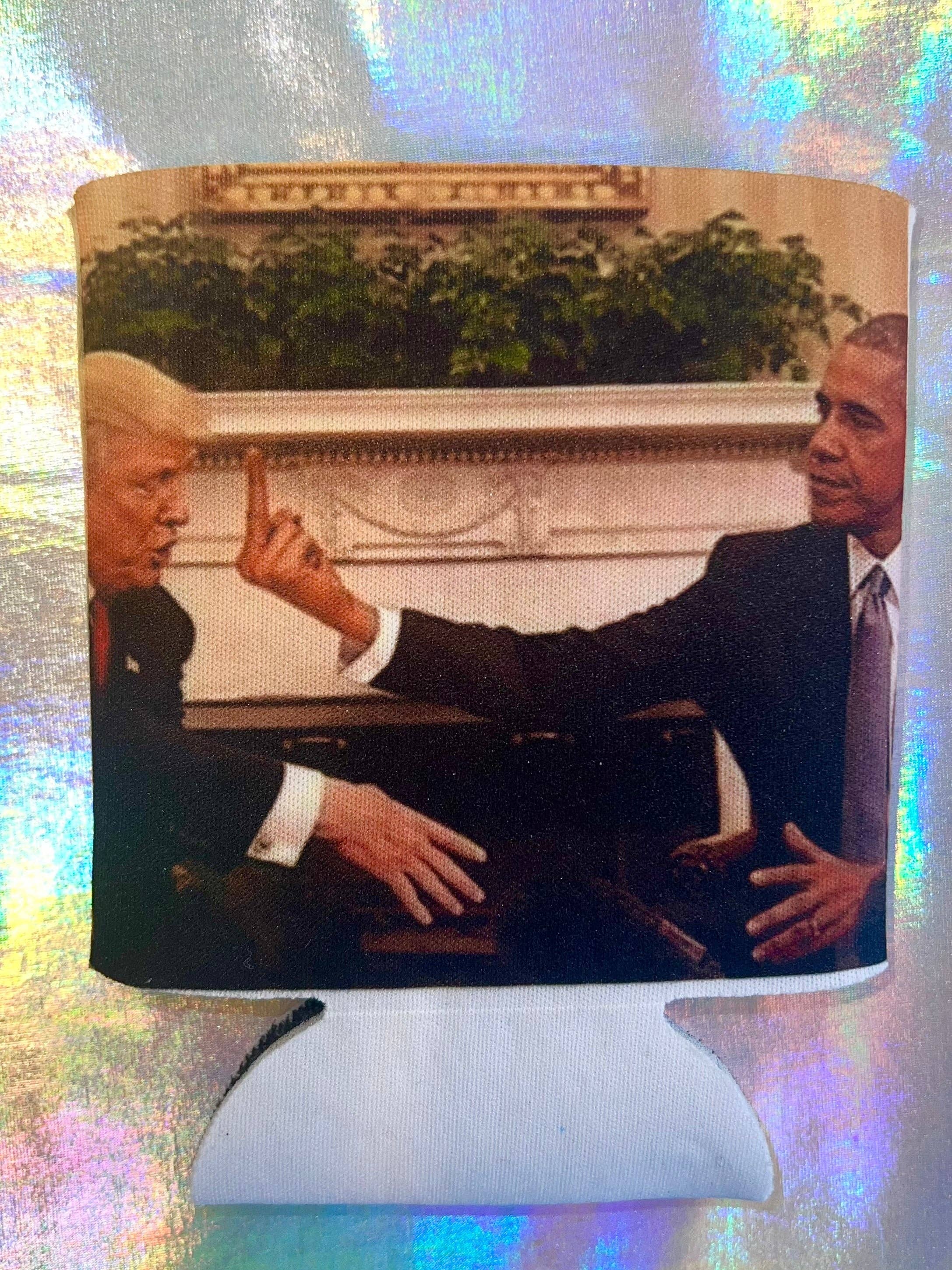Obama Flipping Off Trump Funny Can Cooler