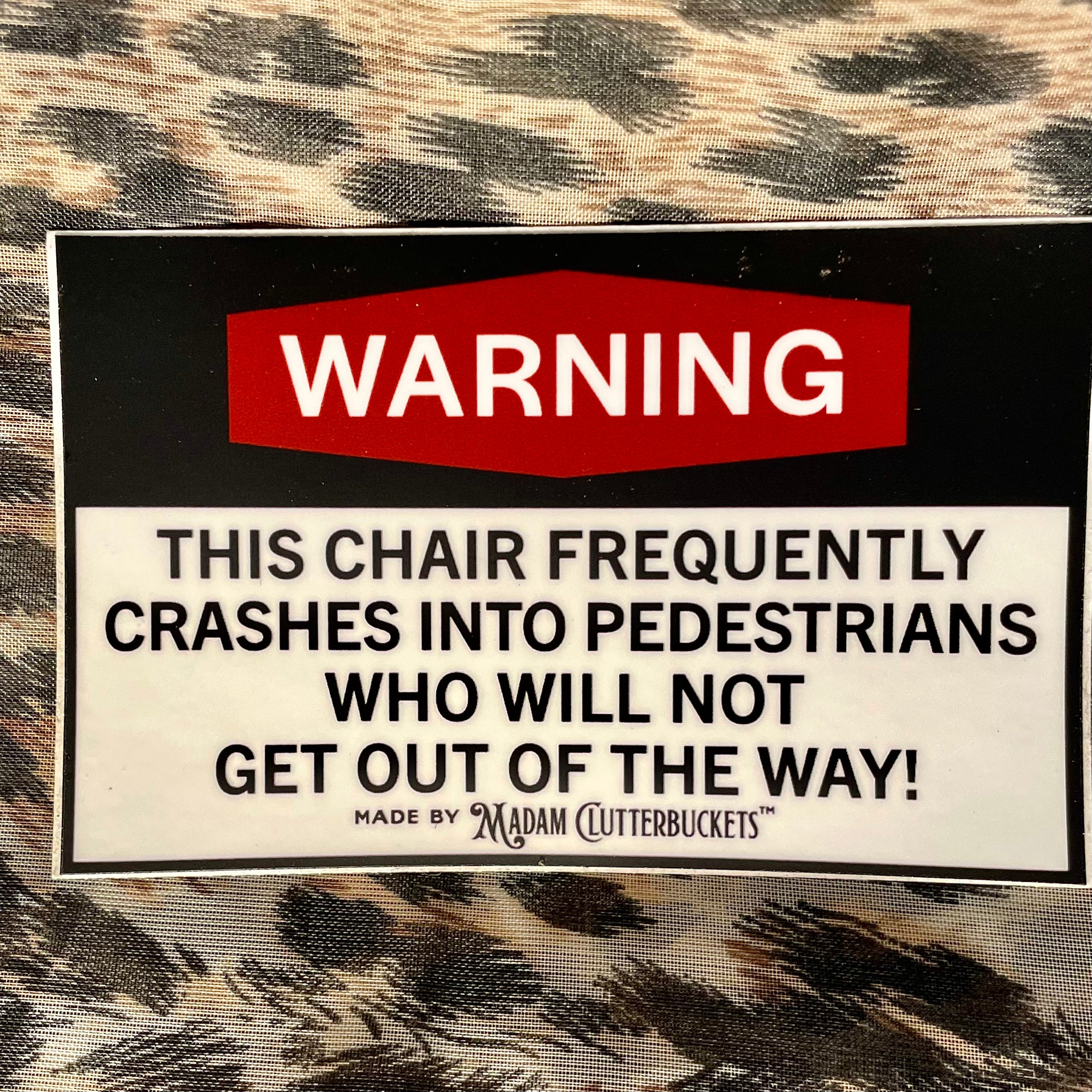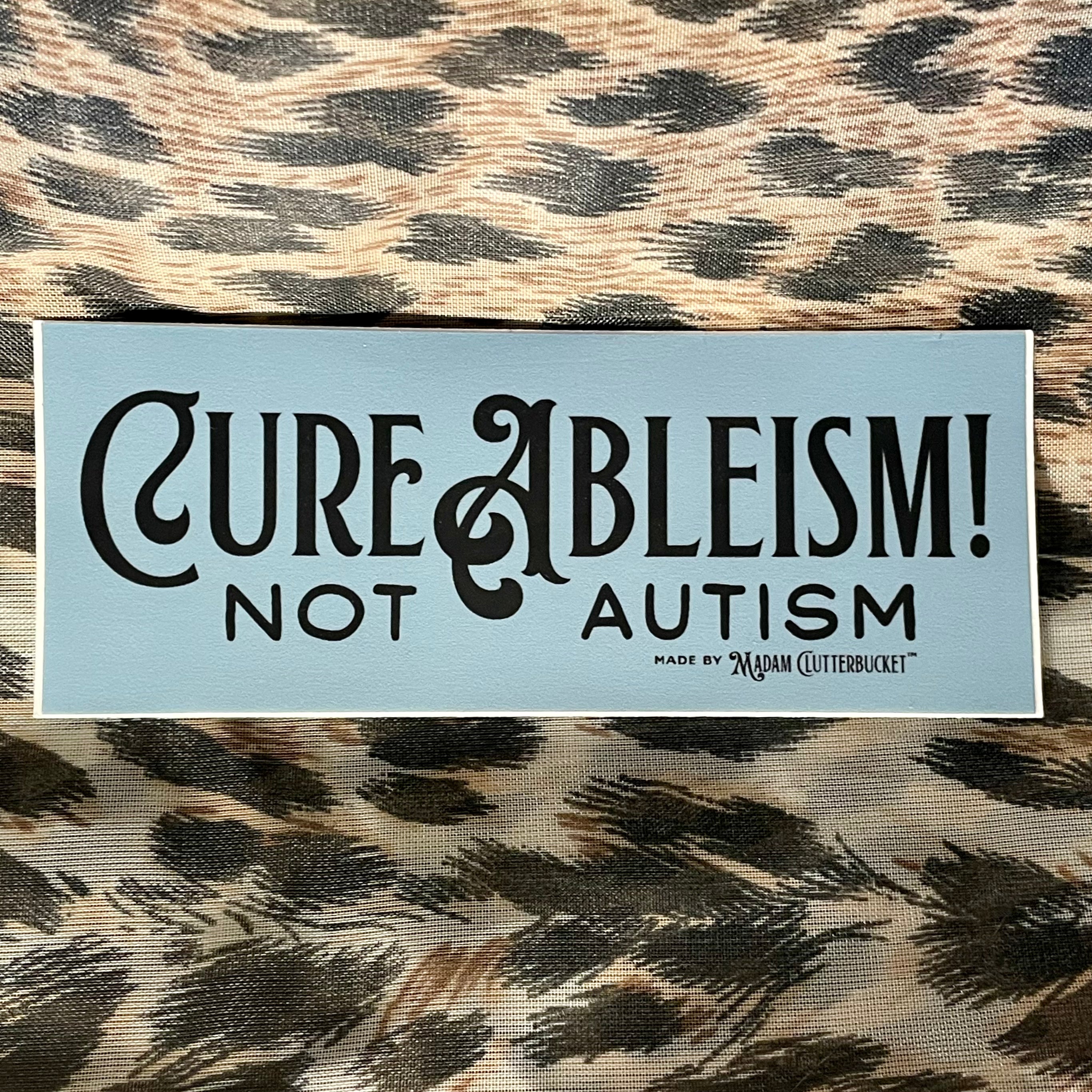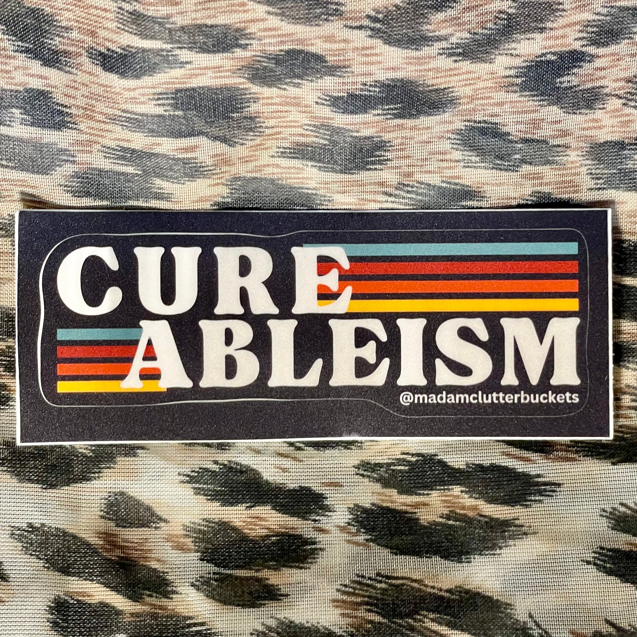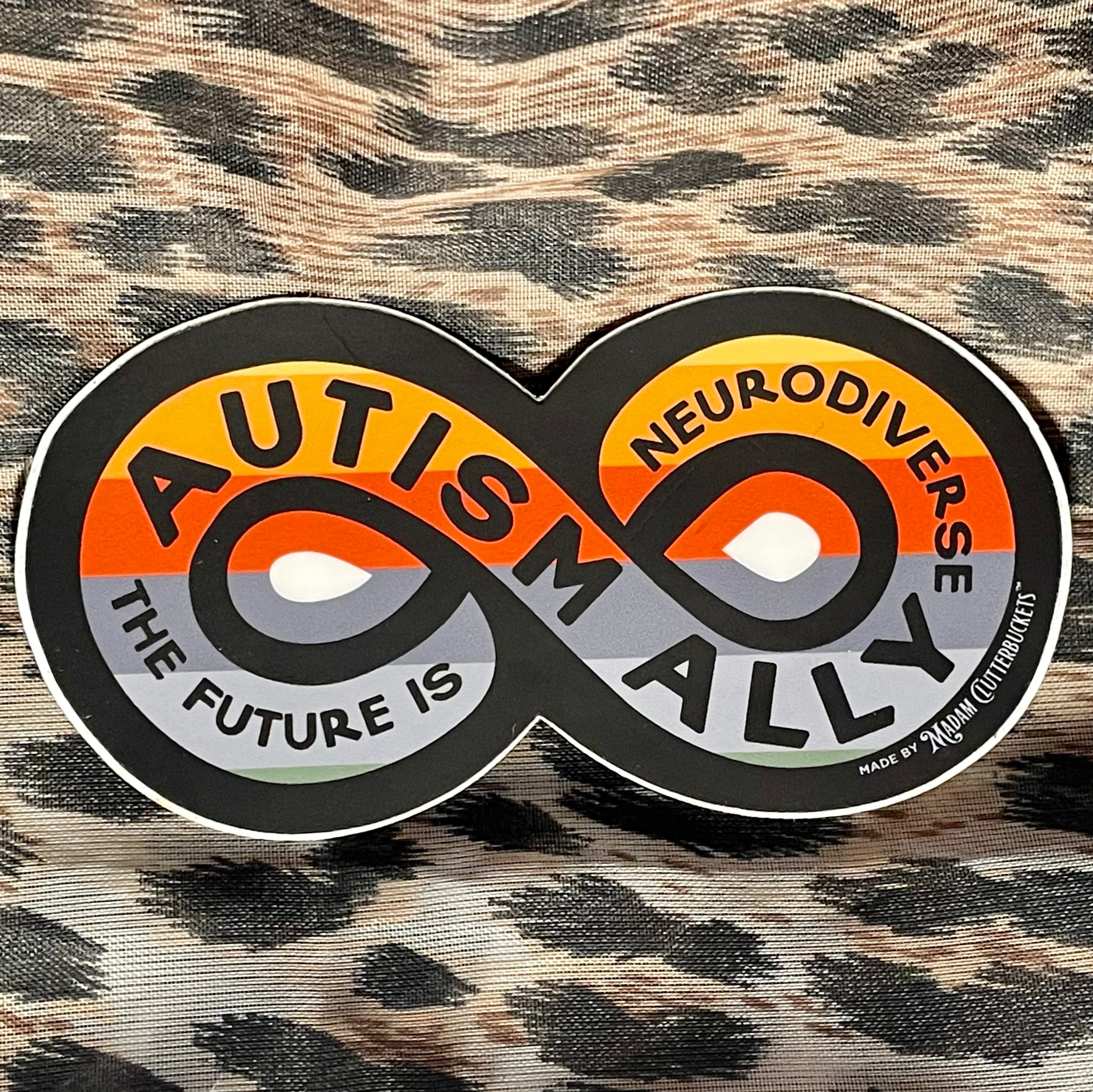 Madam Clutterbucket's ever expanding line of disability advocacy stickers. These are our own unique designs and ideas that were made in collaboration with our employees. These stickers are made from the highest quality of vinyl. The stickers can go through the dishwasher, car washer and are fade resistant.