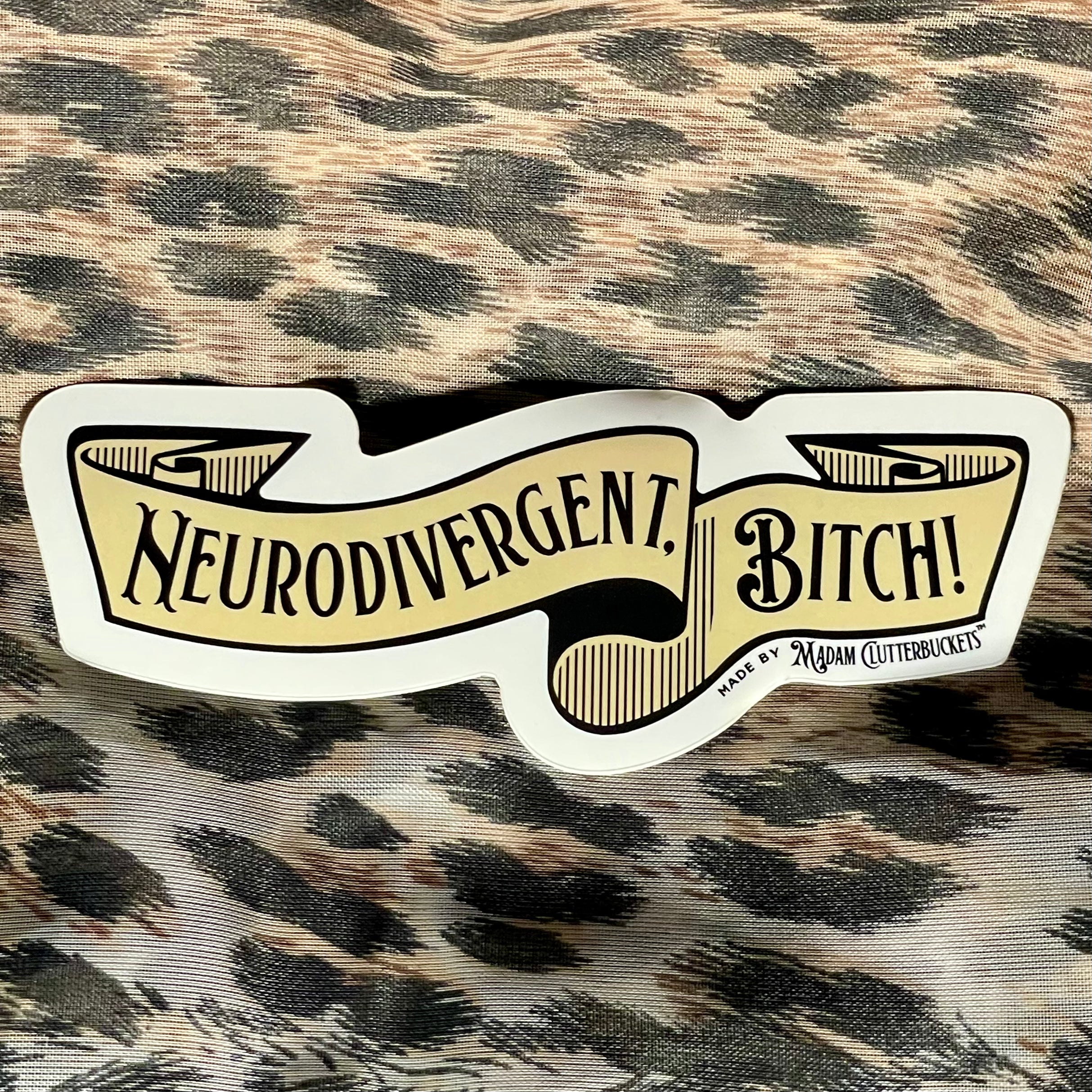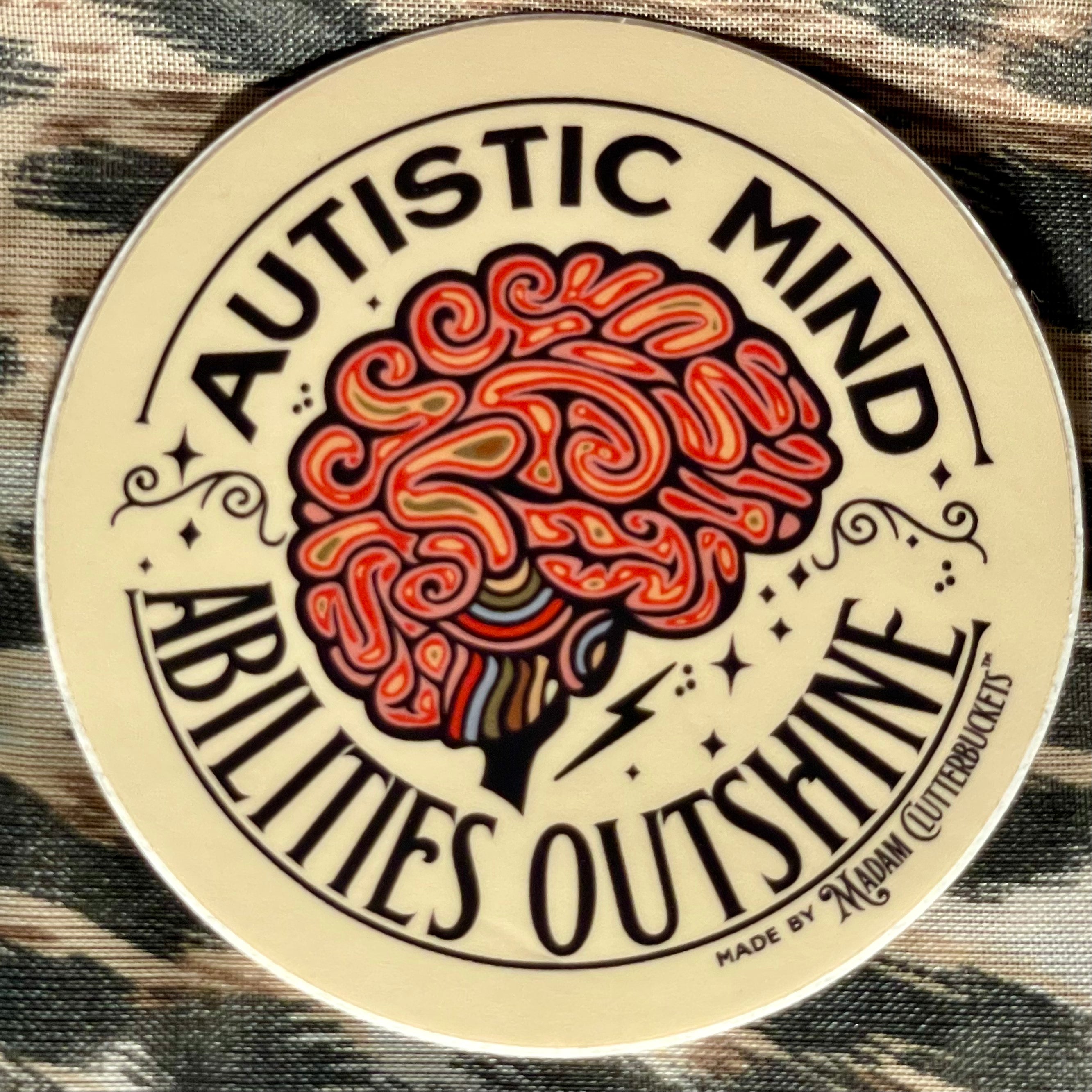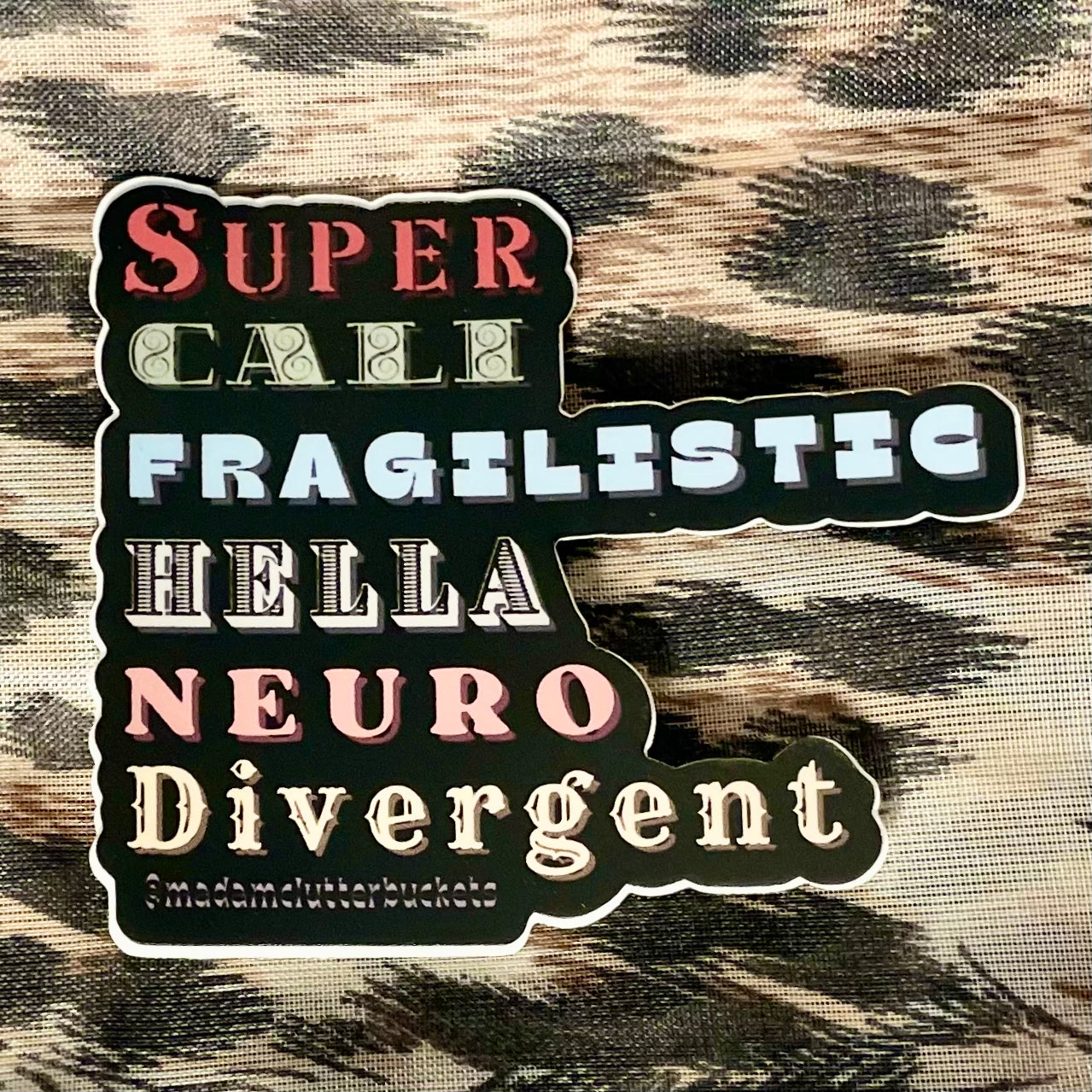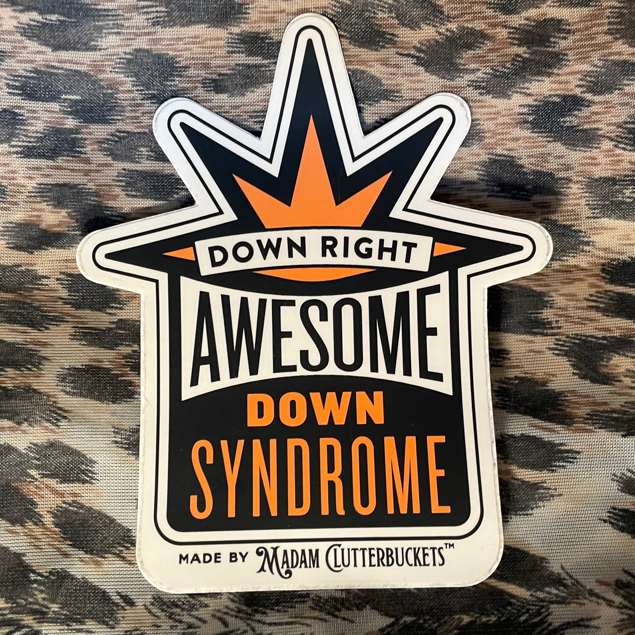 Madam Clutterbucket's ever expanding line of disability advocacy stickers. These are our own unique designs and ideas that were made in collaboration with our employees. These stickers are made from the highest quality of vinyl. The stickers can go through the dishwasher, car washer and are fade resistant.