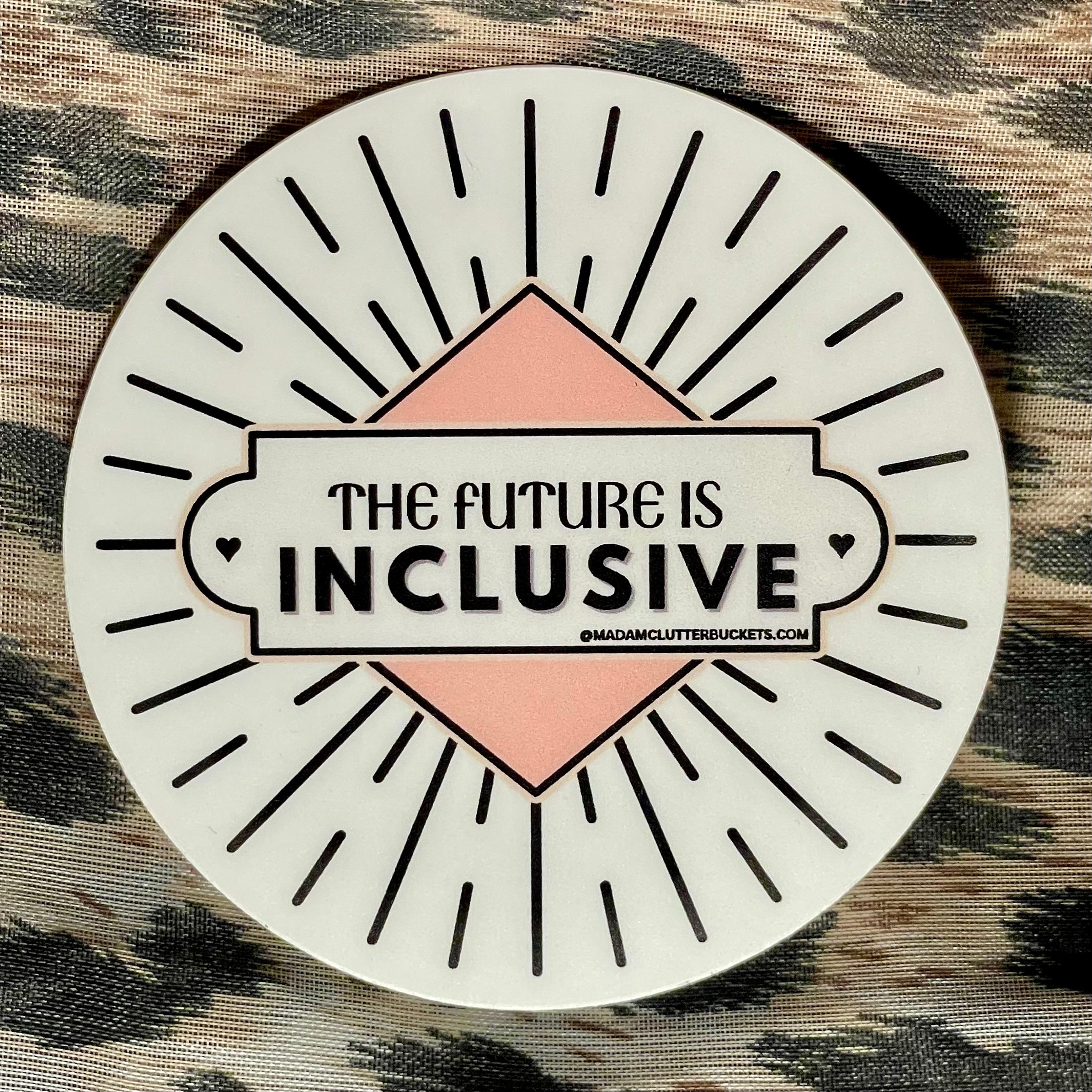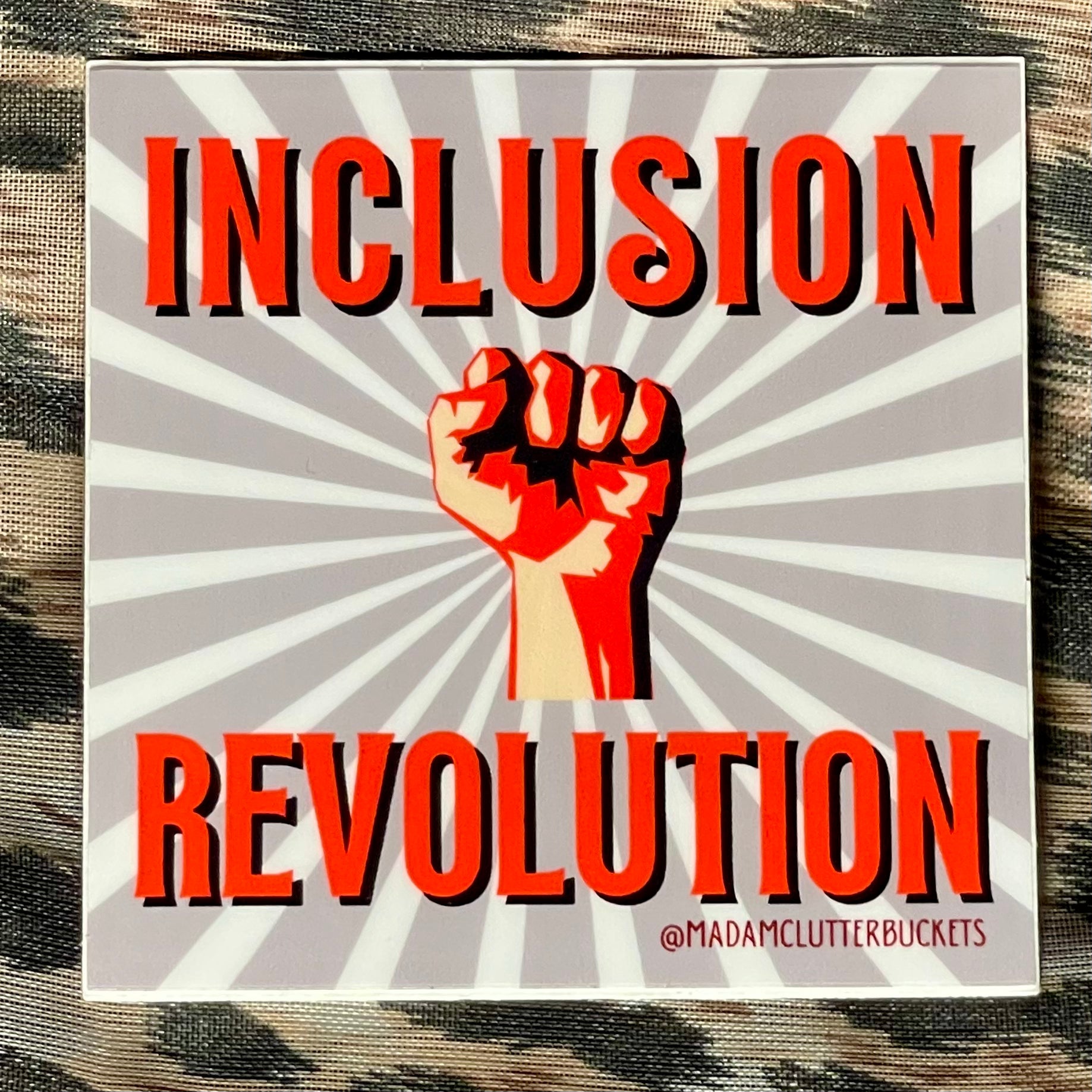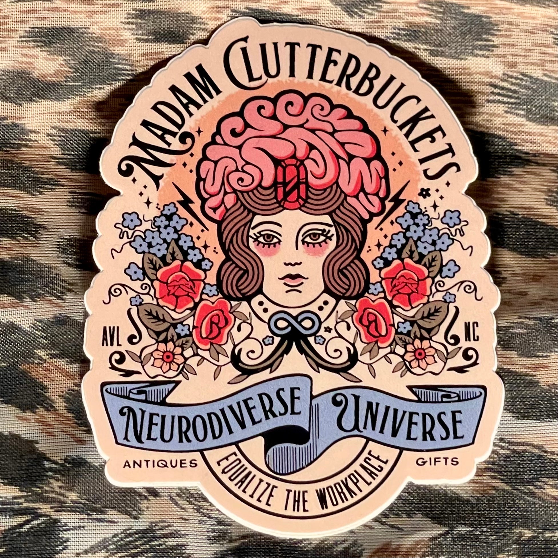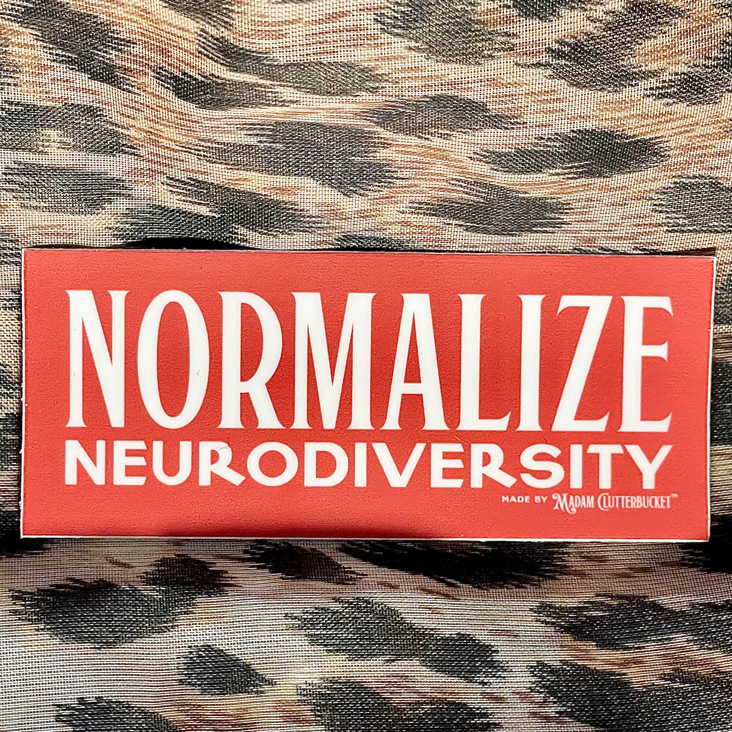 Madam Clutterbucket's ever expanding line of disability advocacy stickers. These are our own unique designs and ideas that were made in collaboration with our employees. These stickers are made from the highest quality of vinyl. The stickers can go through the dishwasher, car washer and are fade resistant.