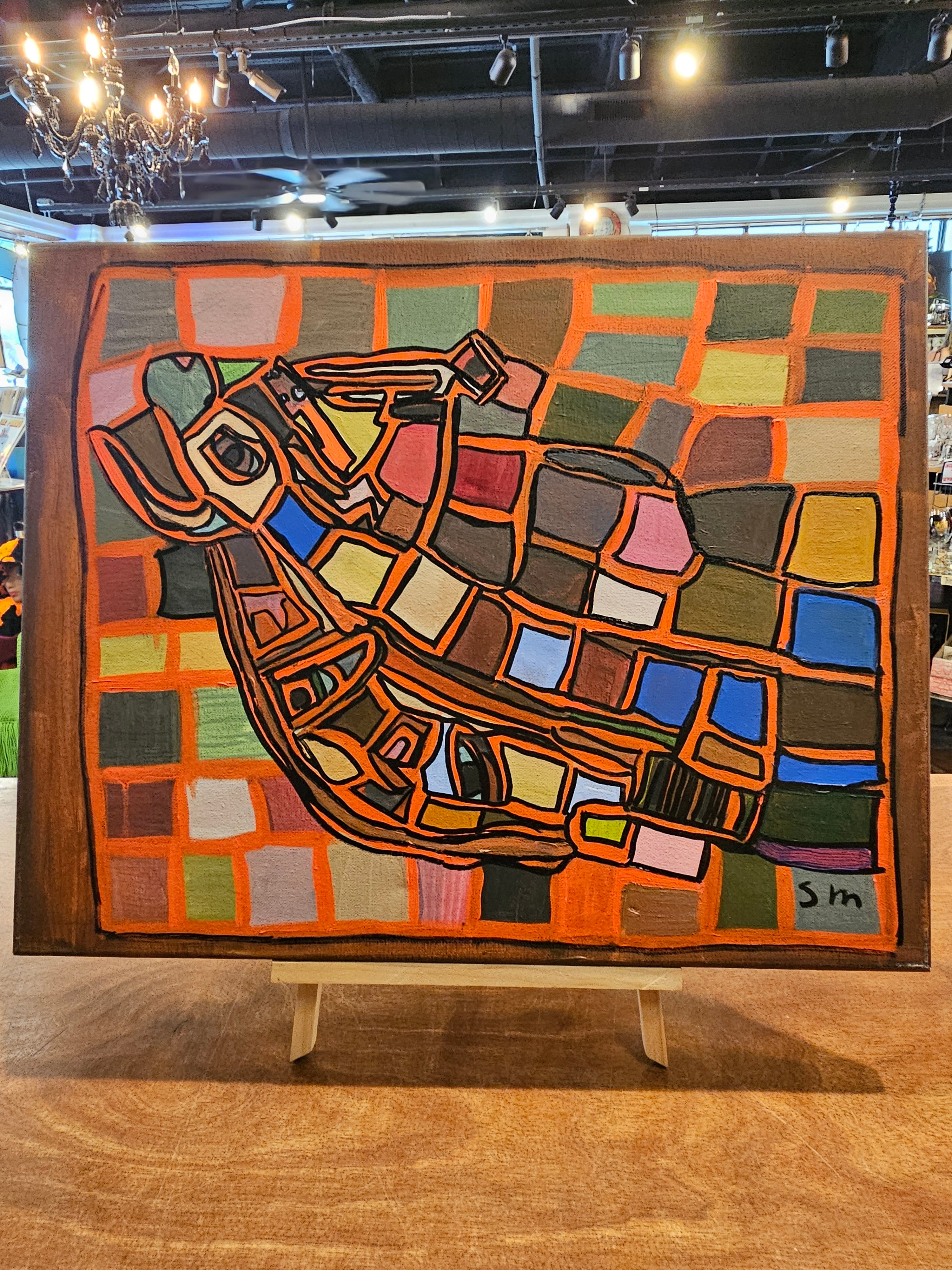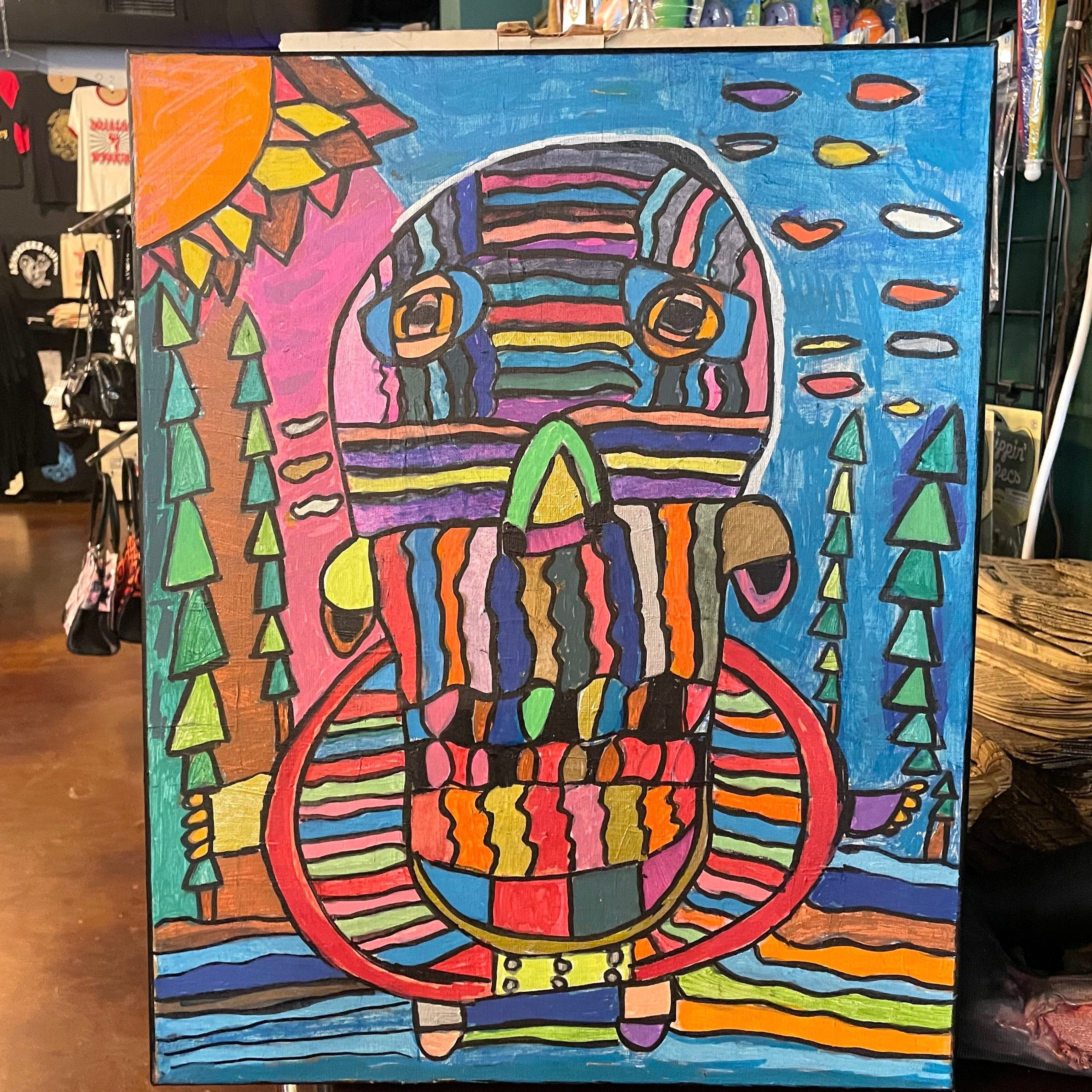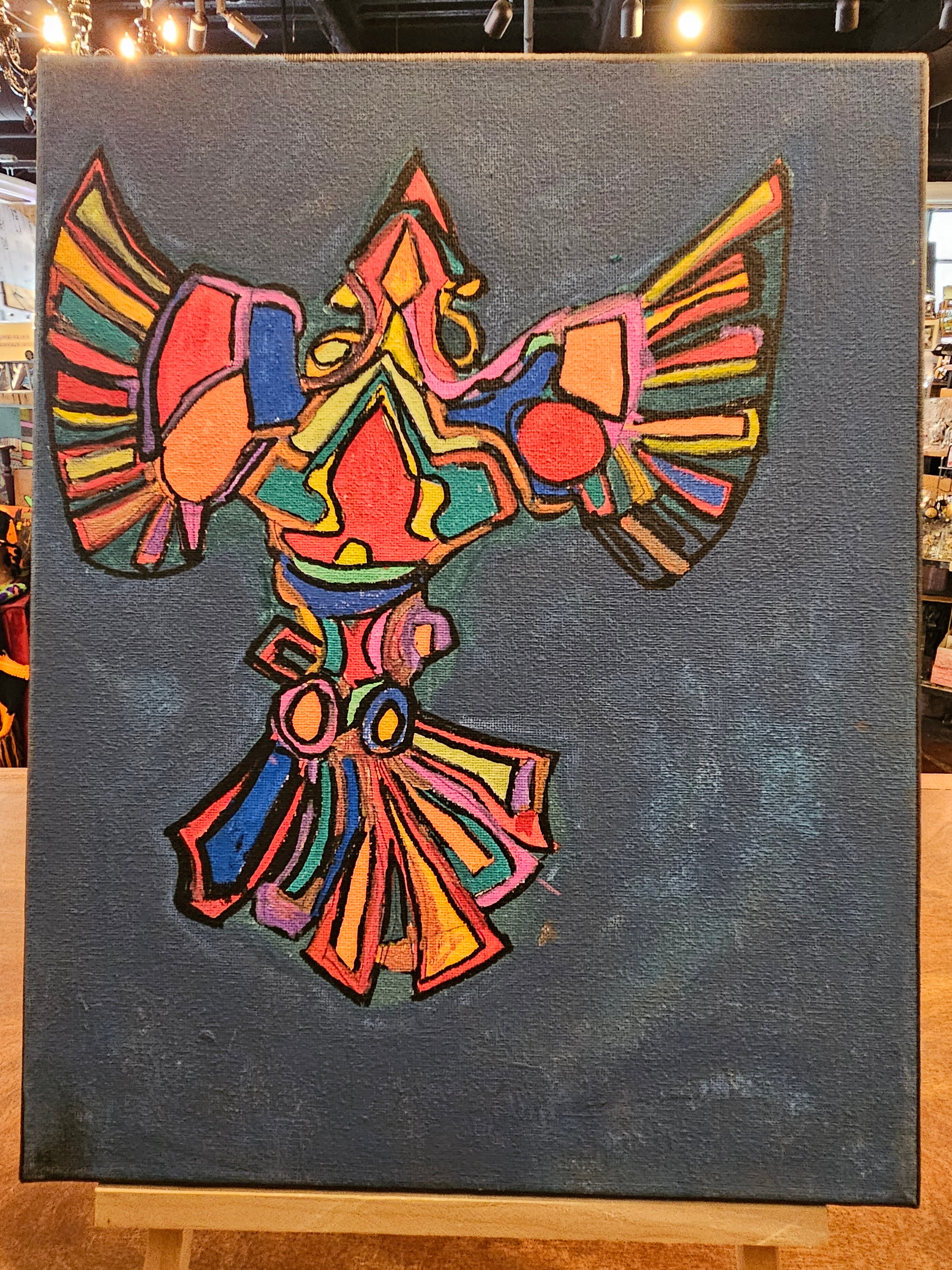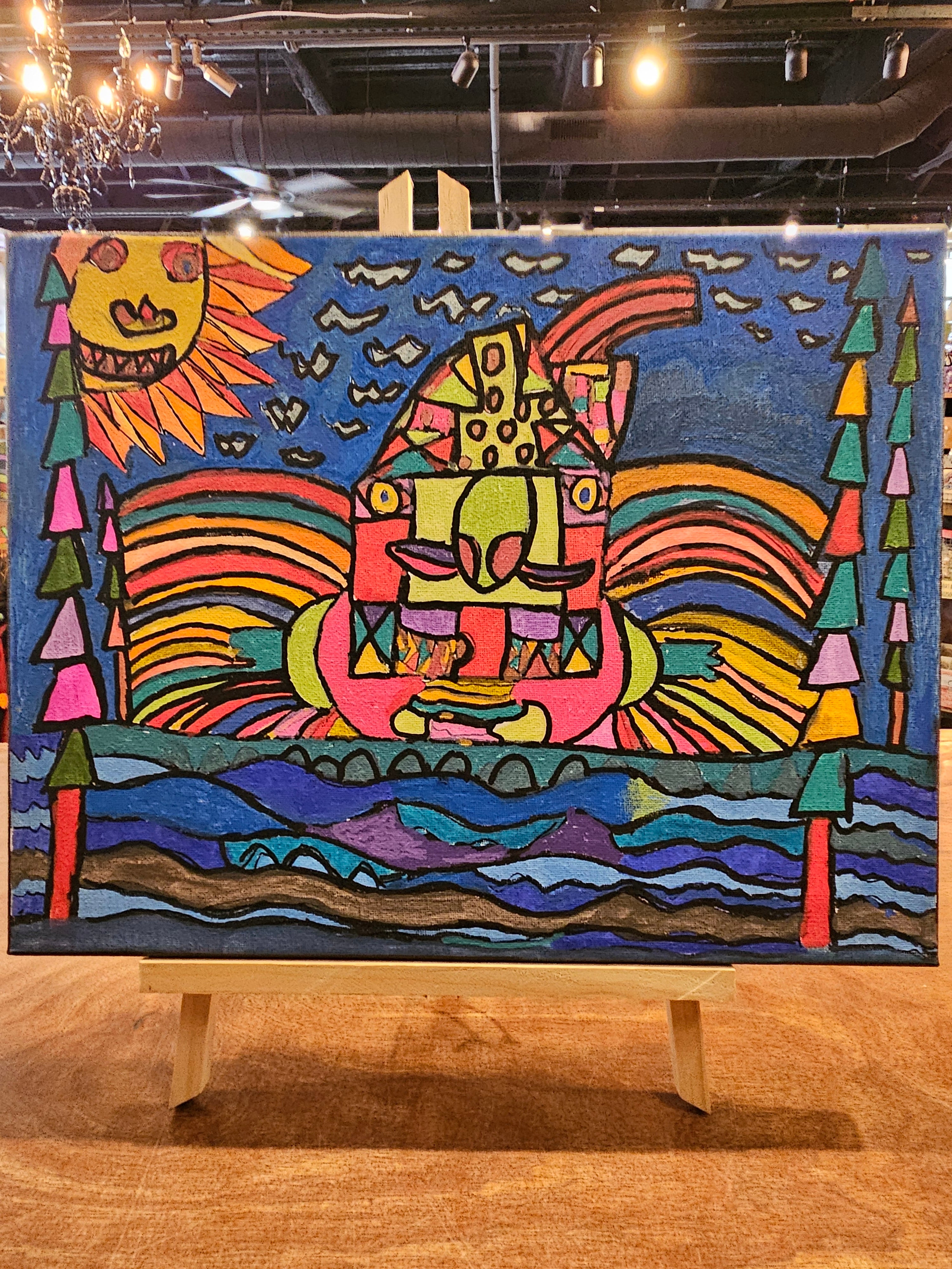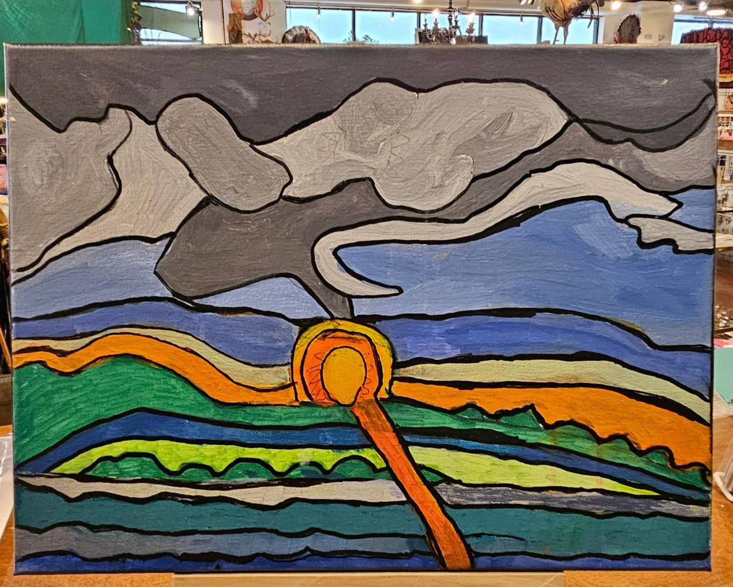 Sequoyah is a Western North Carolina native who paints with acrylic on canvas. Sequoyah’s style has been described as a mix of folk art and abstract genres. Sequoyah paints to express his inner thoughts, memories and imagination. Sequoyah has been featured in solo exhibits around the region and galleries in Atlanta.