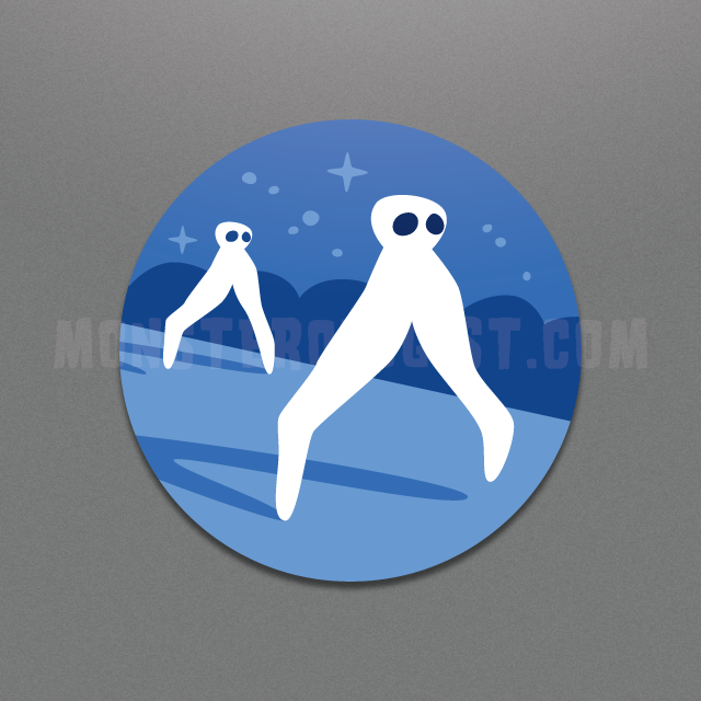 The spooky "Fresno Nightcrawlers" circle sticker, featuring a ghostly pair of eerily walking legs that were caught on security camera and night vision cameras.
